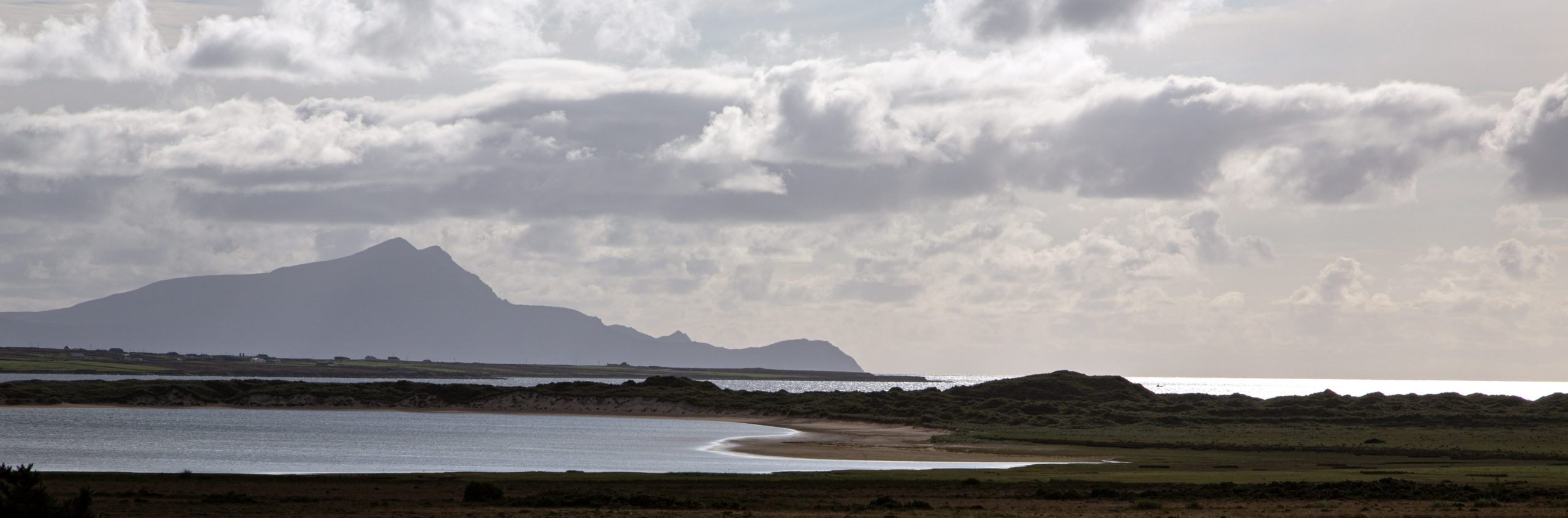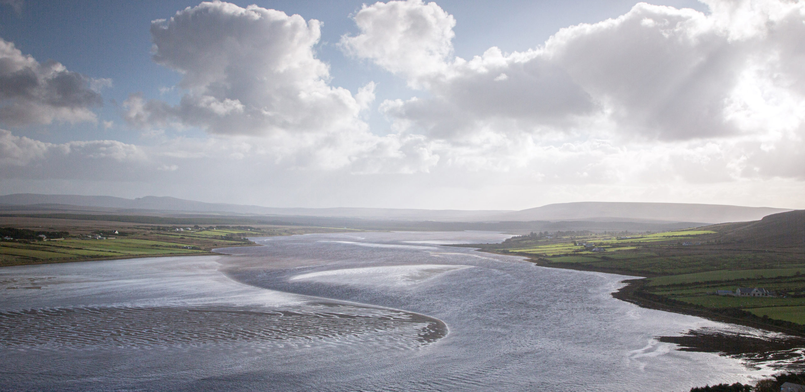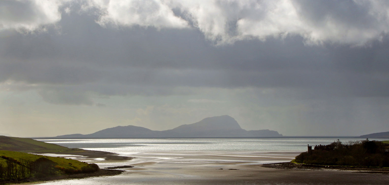 The wide tidal sweep of Sruwaddacon Bay,where the Glenamoy River enters the sea. There is an impressive panorama looking south east along north Mayo.