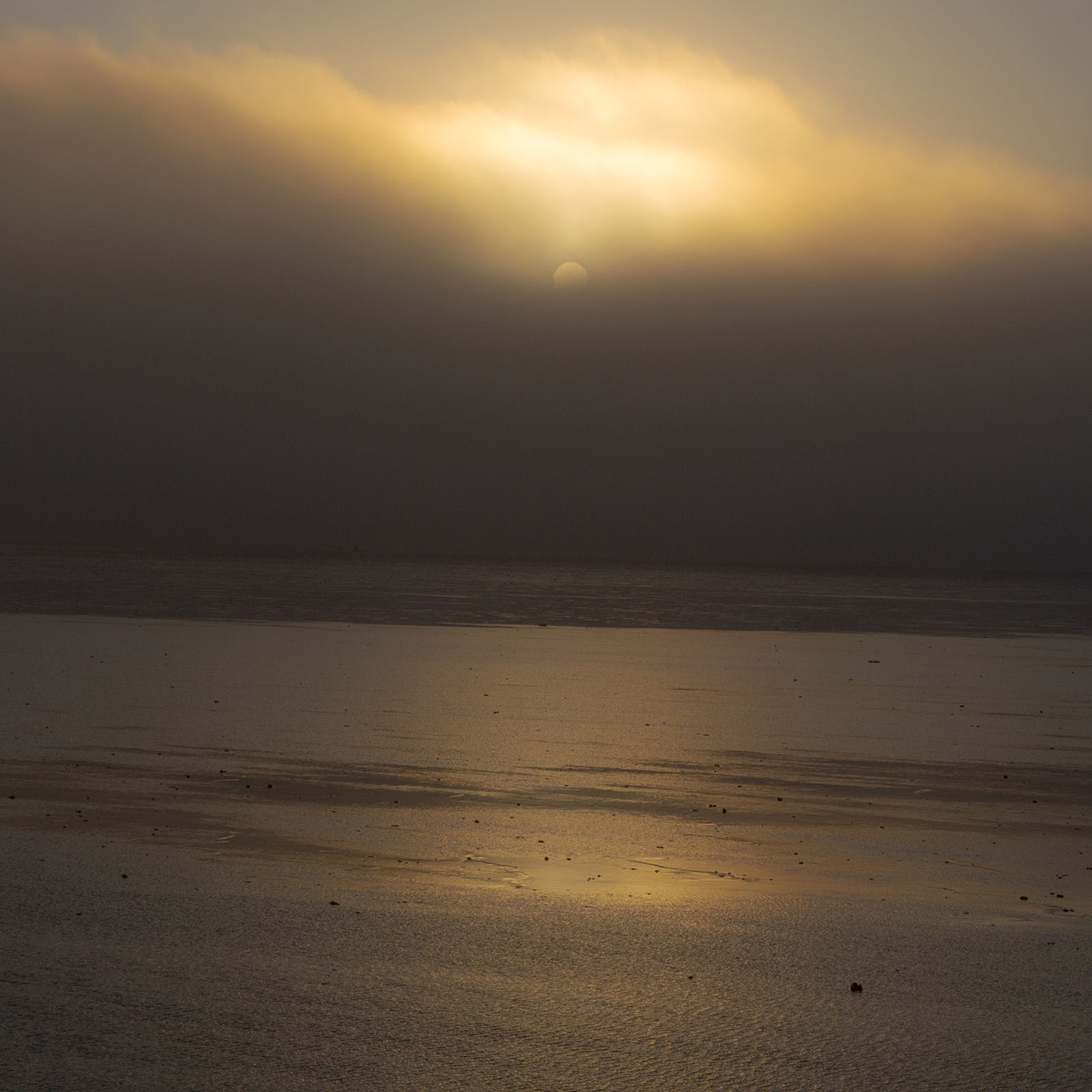 Ever-changing, ever-moving, a rolling sea fog invades the coast and the winter sun plays hide and seek. As quick as it came, it is gone.
